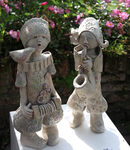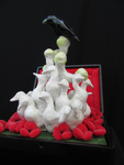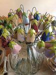 - handgevormde vogels, slapende gedaantes, kleurrijke vazen en bloemen
